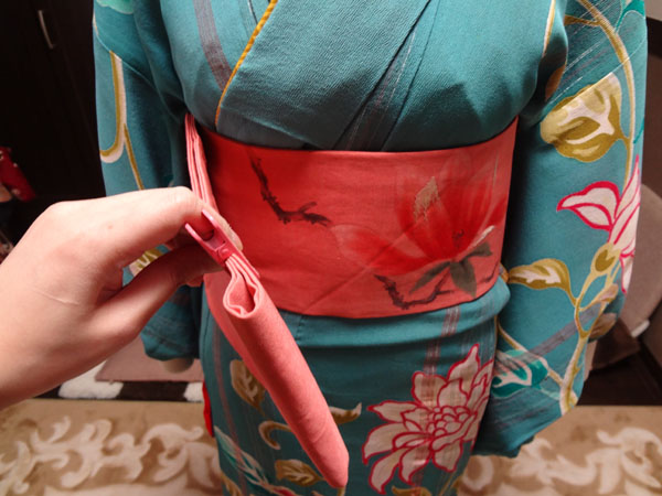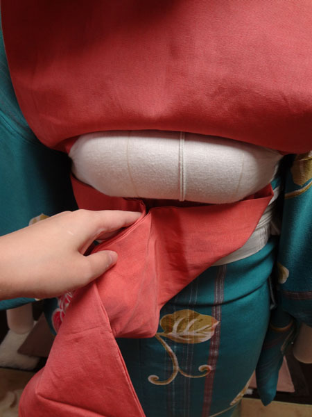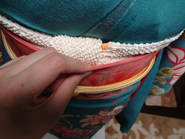 他装の場合は、ここで帯揚げをかけます。