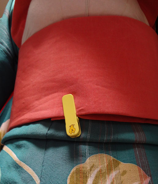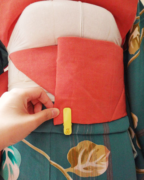 後ろのクリップが一巻き目にしか留まっていないので、一巻き目と二巻き目両方に留め変えます。(柄の調整をしなかった場合も、ここでクリップを留めます)